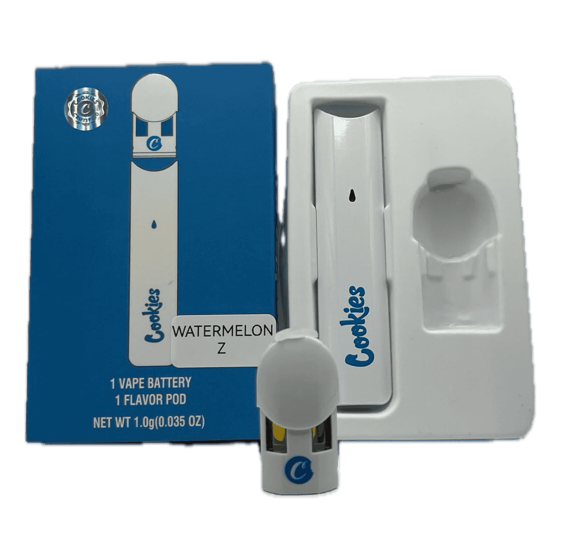 A watermelon-flavored THC vape cartridge from Cookies, featuring sweet, tropical fruity notes with an earthy undertone and candy-like finish. The formulation uses high-quality THC oil (often with THCa diamonds in some versions) and natural terpenes for rich aroma and bold flavor, delivering relaxing, euphoric effects typical of the indica-dominant Watermelon Z profile.
